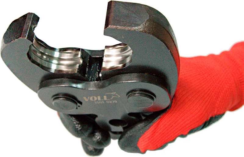 Пресс-клещи Voll M 35 (Волл М 35) предназначены для радиального обжима (радиальной опрессовки) фитингов на медных, тонкостенных стальных, нержавеющих стальных трубах Ø 35 мм аккумуляторным гидравлическим радиальным пресс-инструментом для обжима фитингов Voll V-Press.