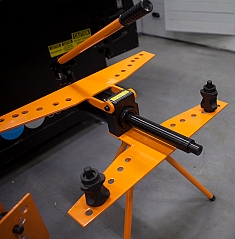 - 2 горизонтальных упора, устанавливаемые в отверстия верхней и нижней рамы, для регулировки радиуса гиба труб